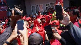 Ratusan pendukung mengawal Mbak Ita menuju kantor Kantor DPC PDIP Kota Semarang. Mereka kompak berteriak “Mbak Ita Wali Kota Meneh” sembari membentangkan spanduk bertuliskan dukungan kepada Hevearita Gunaryanti Rahayu.