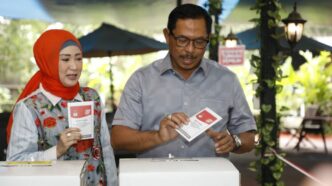 Semarang, UP Radio – Penjabat Gubernur Jawa Tenagah, Nana Sudjana menggunakan hak pilihnya pada Pemilu 2024 di TPS 002, Jalan Slamet RT 5 RW 1 Kelurahan Gajahmungkur, Kecamatan Gajahmungmungkur, Kota Semarang, Rabu (14/2/2024). Pemilu 2024 merupakan kali pertama ia terdaftar sebagai pemilih, setelah pensiun dari Polri pada 2023 lalu.
