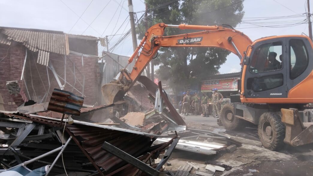 Semarang, UP Radio – Satuan Polisi Pamong Praja (Satpol PP) Kota Semarang membongkar tujuh bangunan liar yang berdiri diatas saluran air di Jalan Afa Raya RT 4 RW 17, Sendangmulyo, Tembalang, Semarang, Senin (14/11) pagi.