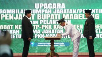 Semarang, UP Radio – Penjabat (Pj) Gubernur Jawa Tengah Nana Sudjana melantik Sepyo Achanto sebagai Pj Bupati Magelang, menggantikan Zaenal Arifin yang menjabat 2019-2024. Tak hanya meminta Sepyo memperhatikan kondisi wilayah menjelang pemungutan suara, Nana juga menitipkan tugas untuk menuntaskan stunting dan memaksimalkan pariwisata Borobudur.