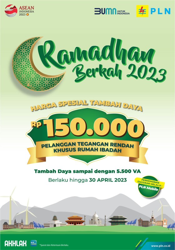 Jakarta, UP Radio – Bertepatan dengan bulan suci Ramadhan, PT PLN (Persero) kembali memberikan promo tambah daya untuk rumah ibadah melalui program Ramadhan Berkah 2023. Hanya dengan Rp 150 ribu rumah ibadah bisa menaikkan daya hingga 5.500 Volt Ampere (VA).