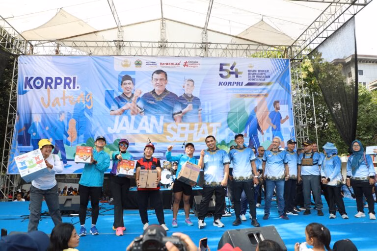 Semarang, UP Radio – Ribuan warga tumpah ruah mengikuti Jalan Sehat Korpri Jawa Tengah 2025 yang digelar dalam rangka HUT ke-54 Korpri, Sabtu (29/11/2025). Kegiatan yang dipusatkan di halaman Kantor Gubernur Jawa Tengah itu dimulai sejak pukul 05.30 WIB, dan berlangsung meriah dengan rangkaian acara, mulai dari jalan sehat, bazar UMKM, hingga pemeriksaan kesehatan gratis.