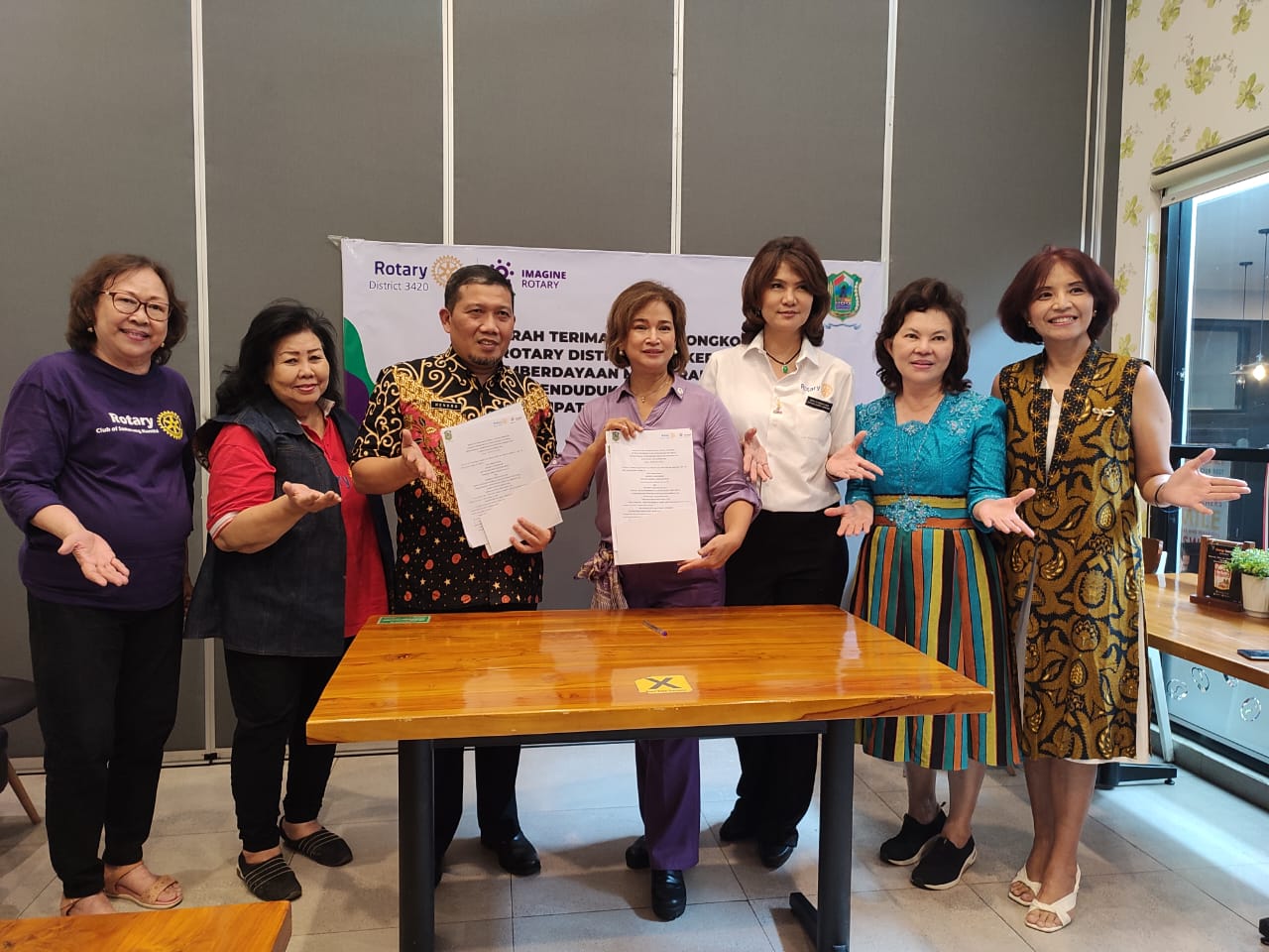 Penyerahan bantuan ditandai dengan penandatangan Memorandum Of Understanding (MoU) yang dilakukan oleh Lina Soeratman District Governor Rotary 3420 Wilayah Indonesia Timur dan Kepala Dinas Pemberdayaan Masyarakat dan Desa Pengendalian penduduk dan Keluarga Berencana (Dinpermades P2KB) Kabupaten Banjarnegara, Hendro Cahyono di Semarang, Selasa (4/10).