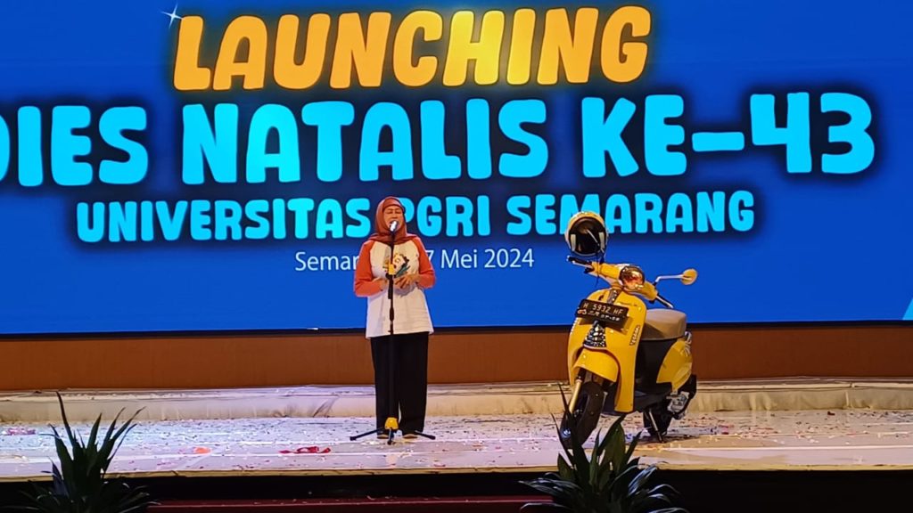 “Jika diibaratkan manusia perempuan usia 43 tahun sudah sangat dewasa. Apabila seorang laki-laki benar-benar masuk usia dewasa, intinya diusia 43 tahun UPGRIS sekarang ini masih diusia produktif-produktifnya,” kata Rektor saat memberikan sambutan saat Launching Dies Natalis Ke-43 Universitas PGRI Semarang di Balairung (17/5/2024).