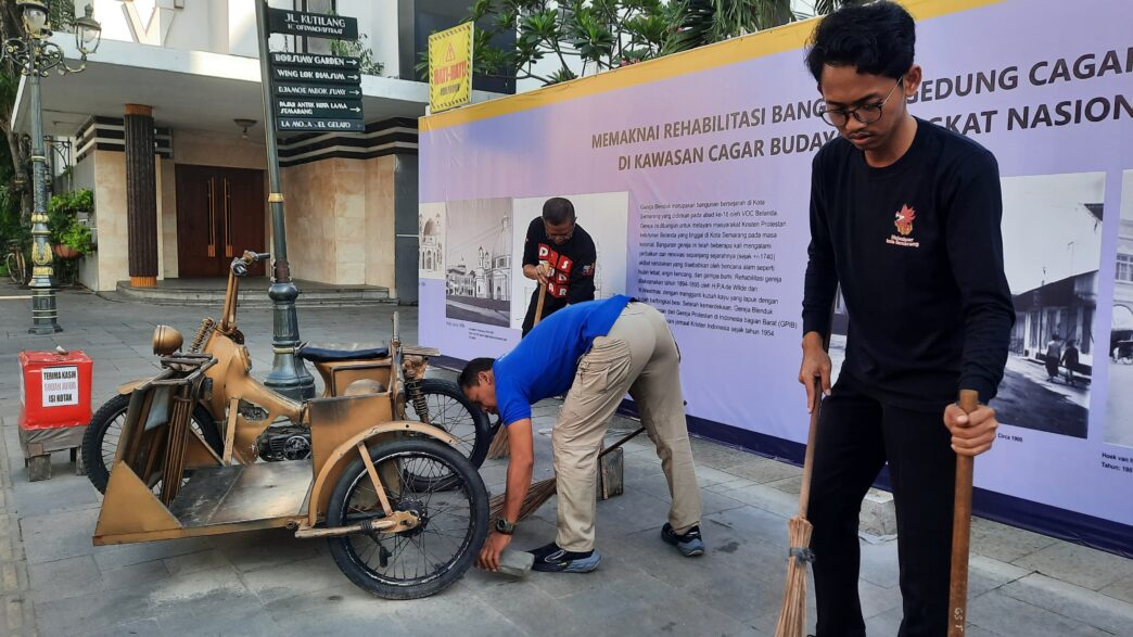 “Kami dengan teman-teman disbudpar dan vendor di kawasan Kota Lama melaksanakan kerja bhakti massal. Tentunya, kami berharap kegiatan kali ini bisa membantu mendukung Kota Lama sebagai primadona destinasi wisata prirotas di Jateng,” papar Wing, saat resik-resik Kota Lama.
