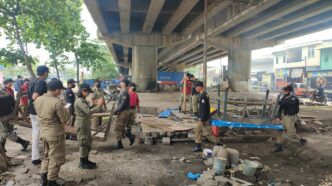 Semarang, UP Radio – Satuan Polisi Pamong Praja (Satpol PP) Kota Semarang menertibkan puluhan lapak pedagang kaki lima (PKL) yang berada di bawah Flyover Pelabuhan Tanjung Mas tepatnya di Jalan Usman Janatin, Semarang Utara, Selasa (7/2/2023).