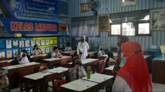 “Di kelas kita pasang web camera, kita integrasikan dengan google meet. Jadi ketika guru ngajar di sekolah, yang daring dari rumah tetap mendapat pembelajaran sama seperti yang di sekolah,” ujarnya.