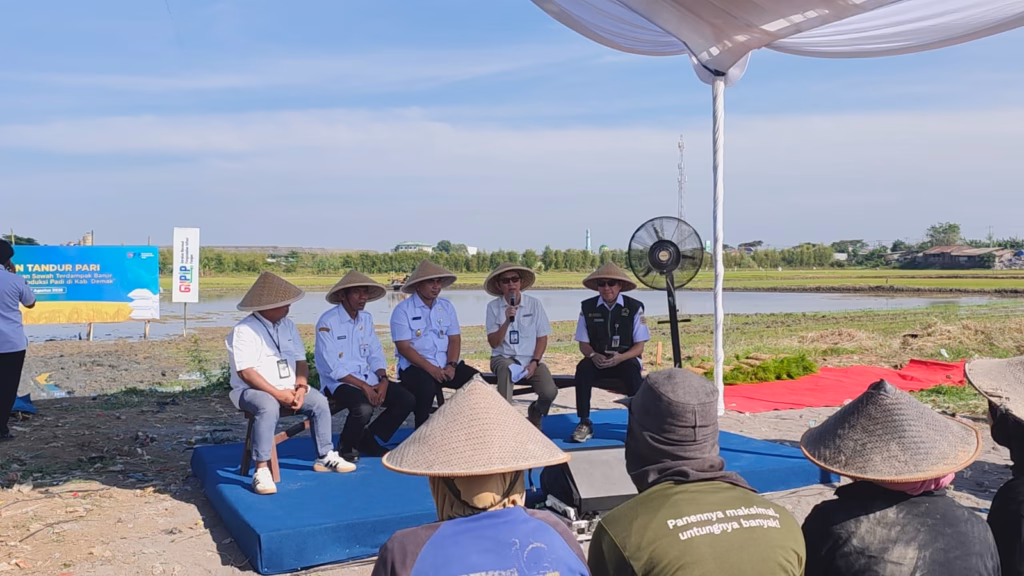 Demak, UP Radio – Pemerintah Provinsi Jawa Tengah bersama Kantor Perwakilan Bank Indonesia Provinsi Jawa Tengah, Pemerintah Kabupaten Demak, PT Pertamina Patra Niaga Regional Jateng & DIY, Dinas Pertanian dan Perkebunan Provinsi Jawa Tengah, Balai Besar Wilayah Sungai (BBWS) Pemali–Juana, Damkar Kabupaten Demak, para pelaku usaha, serta Tim Pengendalian Inflasi Daerah (TPID) Provinsi Jawa Tengah dan Kabupaten Demak, melaksanakan kegiatan “Wiwitan Tandur Pari” sebagai tindak lanjut penanganan sawah terdampak banjir di Kecamatan Karangtengah, Kabupaten Demak.