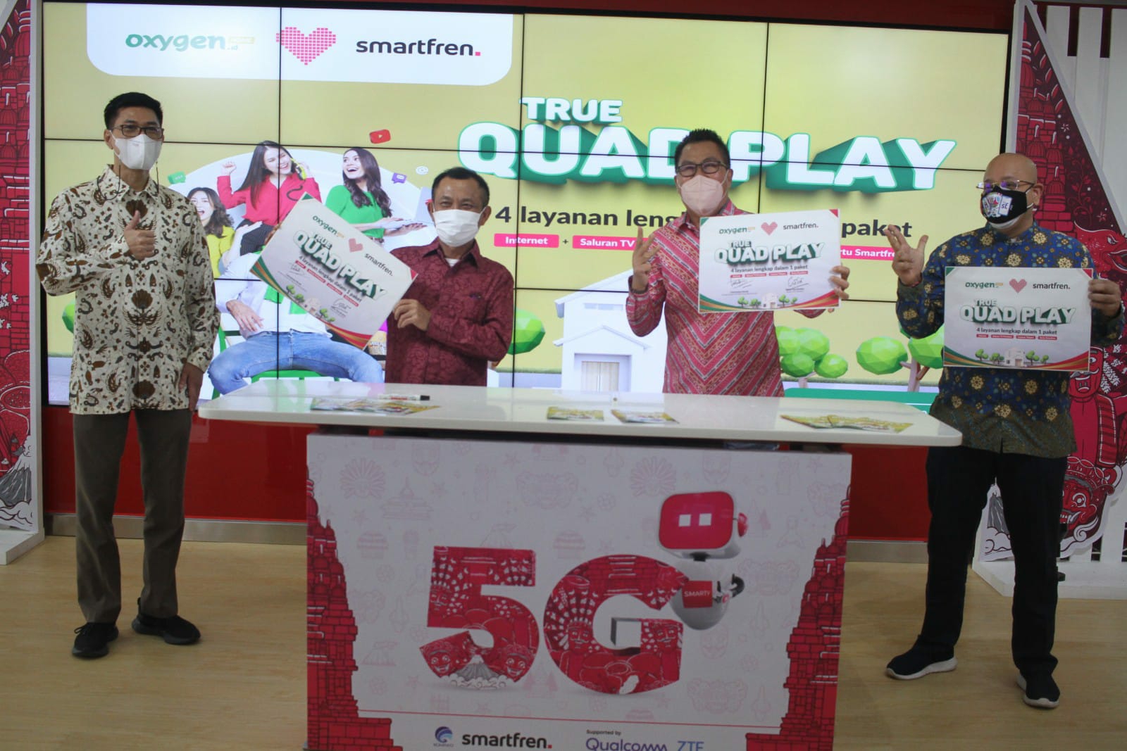 Sinergi ini membuat True QuadPlay menjadi satu produk dengan satu billing yang mengombinasikan produk internet broadband kecepatan tinggi Oxygen.id, saluran TV kabel premium, video on demand, konten OTT, satu nomor telepon rumah bebas abodemen, Kuota Nonstop untuk paket data seluler, serta gratis panggilan telepon ke seluruh nomor Smartfren.