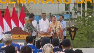 Semarang, UP Radio – Presiden RI, Joko Widodo meresmikan Sistem Penyediaan Air Minum (SPAM) Semarang Barat pada Senin (23/1/2024). Dalam kegiatan itu, Jokowi didampingi oleh Ibu Negara Iriana Jokowi, Menteri PUPR Basuki Hadimuljono, Pj Gubernur Jateng, Nana Sudjana dan Wali Kota Semarang, Hevearita Gunaryanti Rahayu.