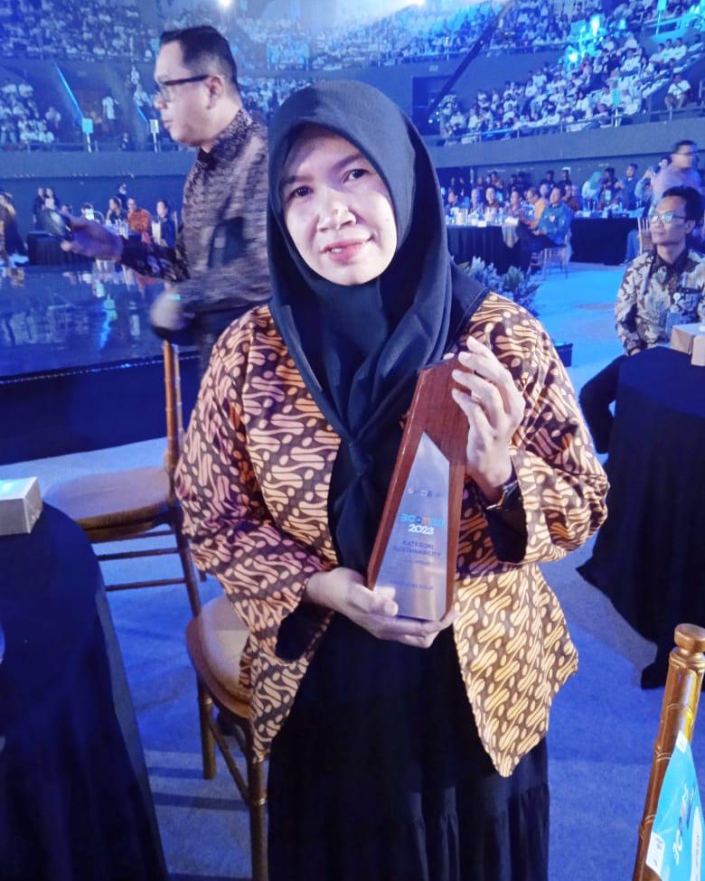 Dalam ajang BUMN Corporate Communications and Sustainability Summit (BCOMSS) 2023, Kamis malam di Jakarta (9/3), Sri Setyaningsih didaulat sebagai local hero terbaik di antara sejumlah kontestan lainnya yang dibina oleh perusahaan BUMN di Indonesia.