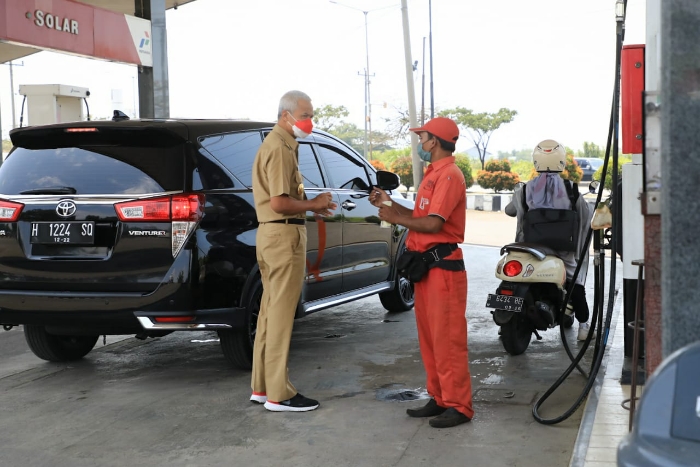 Ganjar juga mengapresiasi sistem kontrol yang dilakukan pihak SPBU. Yakni dengan mencatat identitas sopir truk, nomor plat kendaraan serta jumlah penbelian bahan bakar.
