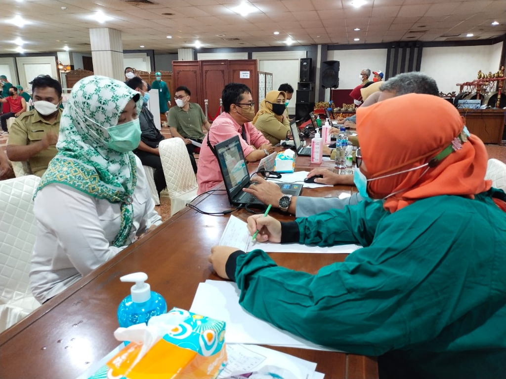 Vaksinasi gelombang II di Gradhika Bhakti Praja, dibagi menjadi dua ruangan dengan tujuan mengurangi kerumunan. Vaksinatornya dari Rumah Sakit Umum Daerah (RSUD) Tugurejo, Rumah Sakit Jiwa Daerah (RSJD) Amino Gondohutomo dan Laboratorium Kesehatan Provinsi Jawa Tengah.
