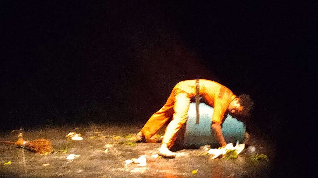 Monolog itu menceritakan tokoh laki-laki dari desa yang sudah hidup di kota metropolitan bekerja sebagai penyapu jalan.