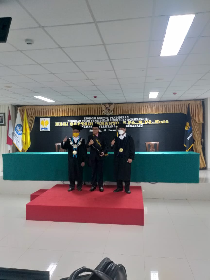 Heri Saptadi Ismanto merupakan doktor ke-6 lulusan Bimbingan dan Konseling Pascasarjana UNNES dengan hasil sangat memuaskan, sedangkan di UPGRIS Heri lulusan doktor Ke-87. (pai)