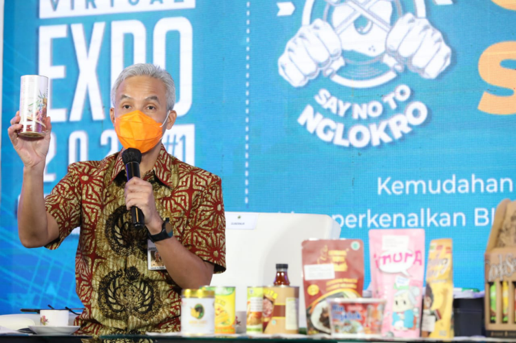 Perhelatan UVO 2021 dibuka secara langsung oleh Gubernur Jawa Tengah, Ganjar Pranowo di kantor Bank Jateng, Selasa (16/2/2021). Sebanyak 150 pelaku UKM unggulan Provinsi Jawa Tengah khusus makanan dan minuman mengikuti acara itu.
