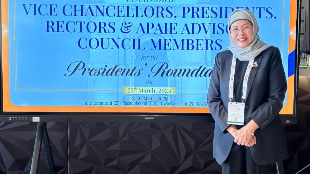 Suciati didampingi oleh Kepala Kantor UPT Kerjasama dan Urusan Internasional Dr Nur Hidayat dan Kepala Bagian Kerjasama Luar Negeri Mega Novita, PhD berpartisipasi hadir secara langsung di Asia-Pacific Association for International Education (APAIE) 2025 yang diselenggarakan di New Delhi, India, pada 24-28 Maret 2025.