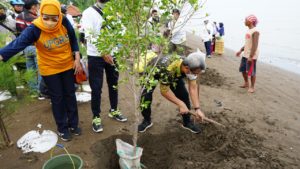 Meski diikuti banyak peserta namun kegiatan pereamian pantai sidodadi digelar dengan tetap menerapkan protokol kesehatan dan semua peserta wajib mengenakan masker. (pai)