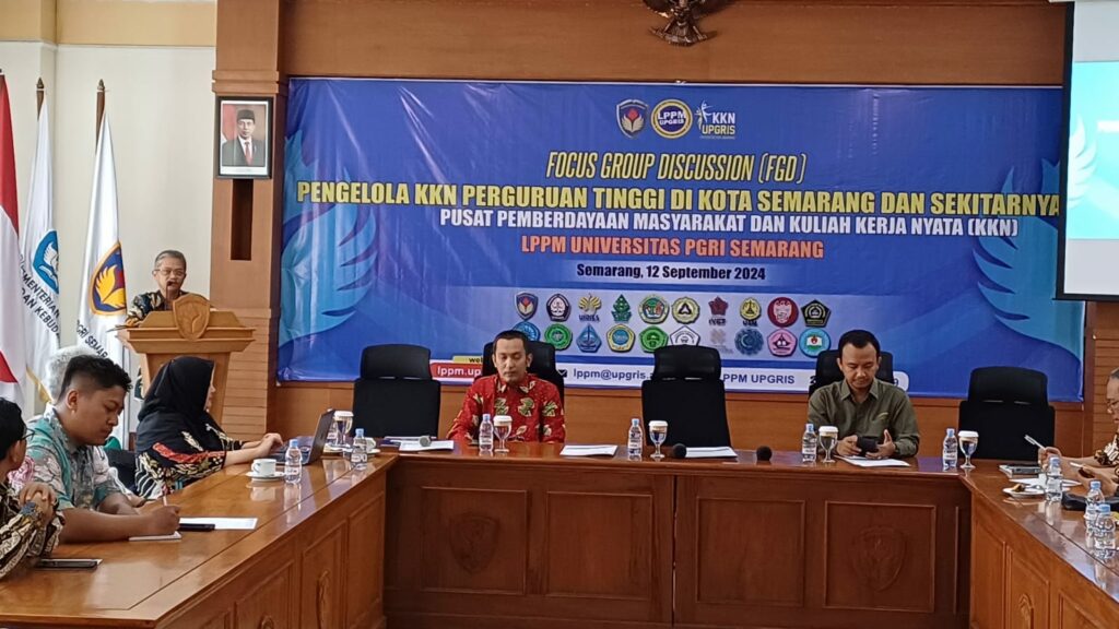Guna mewujudkan wacana tersebut UPGRIS menggandeng 21 Perguruan Tinggi dalam penyelenggaraan Focus Group Discussion (FGD) Pengelola KKN Perguruan Tinggi di Kota Semarang dan Sekitarnya, di GP UPGRIS, Kamis (12/9/2024).