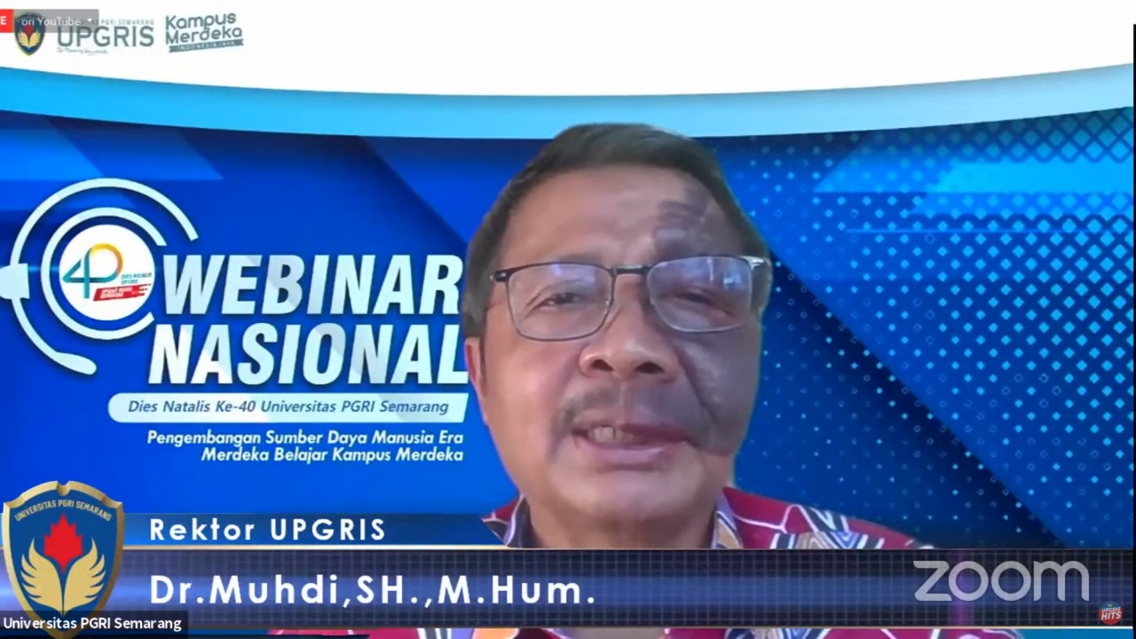 Semarang, UP Radio – Menyambut Dies Natalis ke-40, Universitas PGRI Semarang (UPGRIS) menggelar Webinar nasional yang menghadirkan narasumber koordinator kompetensi pendidik dan tenaga kependidikan direktorat sumber daya Dikti Mulyono SH MH dan kepala LLDIKTI wilayah VI Jawa Tengah Prof Dr Ir Muhammad Zaenuri DEA dengan tema pengembangan sumber daya manusia era merdeka belajar kampus merdeka.