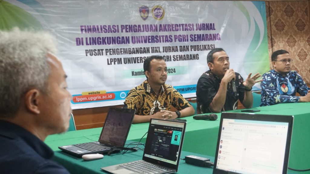 Semarang, UP Radio – Dalam upaya meningkatkan akreditasi jurnal ilmiah, baik akreditasi baru atau reakreditasi, Lembaga Penelitian dan Pengabdian kepada Masyarakat (LPPM) Universitas PGRI Semarang (UPGRIS) melalui pusat pengembangan HKI, Jurnal, dan Publikasi menggelar kegiatan pendampingan percepatan akreditasi jurnal di lingkungan UPGRIS, Kamis (28/3).