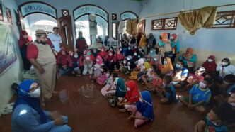 Dengan bermain, bernyanyi serta mengedukasi bagaimana jika ada banjir merupakan materi yang diberikan kepada anak-anak.