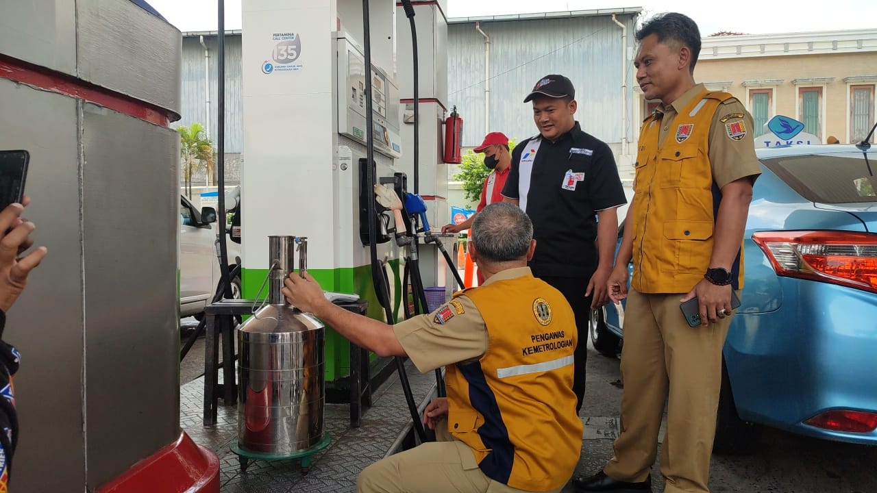 Ia menjelaskan tera ulang pengisian bahan bakar minyak (BBM) dilakukan dengan menguji pengisian BBM menggunakan bejana 20 liter dengan batas toleransi plus minus 100 mililiter.