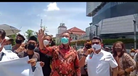 Melihat hal itu, ketika Moeldoko memegang mic dan bicara, massa aksi langsung menolak dan menyuruh mereka segera pergi dengan meneriakkan yel-yel.