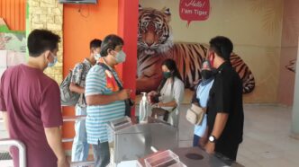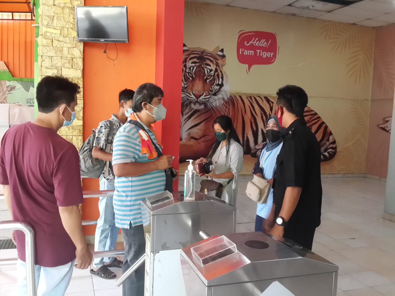 Pantauan di lokasi, nampak serombongan keluarga secara berkala mulai berdatangan. Sebelum menuju loket, mereka langsung disambut petugas untuk cek suhu tubuh. Sementara di tempat pembelian tiket, nampak petugas menerima sejumlah uang setelah pengunjung mencuci tangan dengan hand sanitizer dan menunjukkan kartu vaksin.