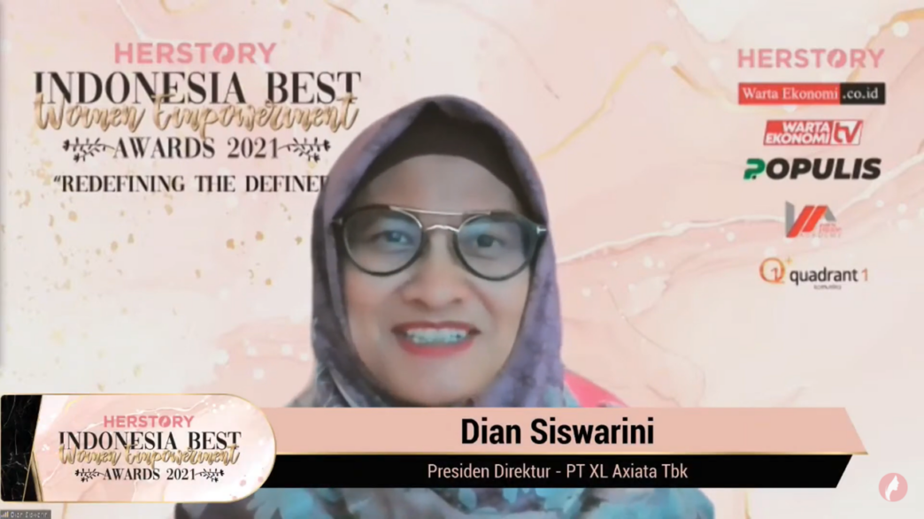 Keenam penghargaan yang dimaksud adalah “Best Women Empowerment Initiative with Oustanding Female Leadership” untuk Presiden Direktur & CEO XL Axiata, Dian Siswarini, dari ajang Indonesia Best Women Empowerment Awards 2021 ‘Redefining the Defined’, yang diselenggarakan oleh HerStory Indonesia dan Warta Ekonomi sebagai apresiasi untuk perusahaan-perusahaan yang telah mendukung kesetaraan gender dan pemberdayaan perempuan.